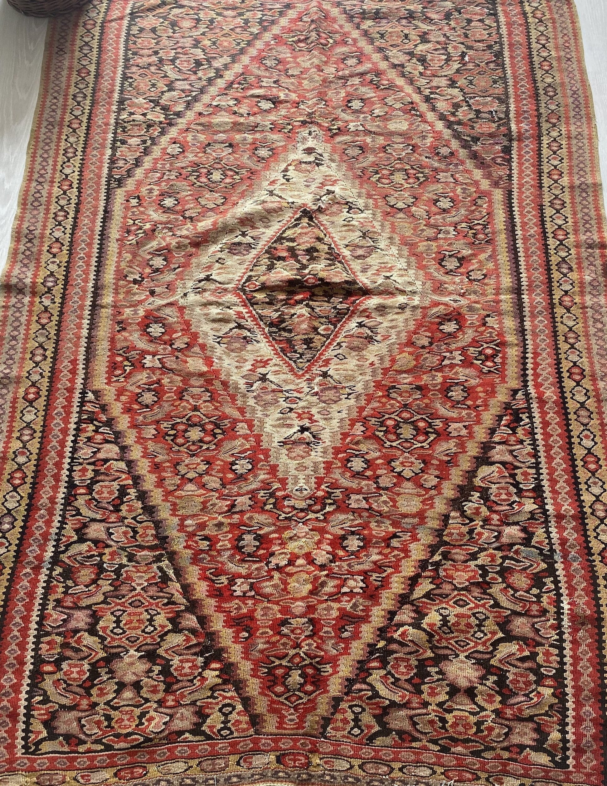 Antique Senneh Kurdish Kilim Rug