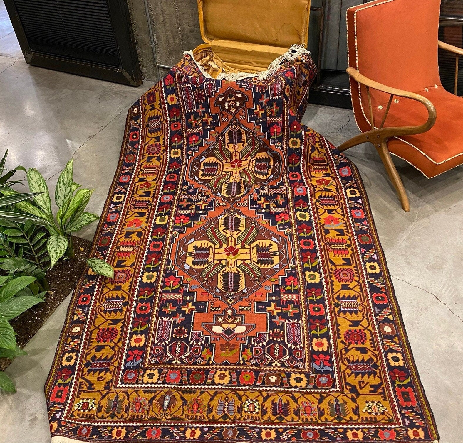 Vintage Sumak Rug with Silk Highlights